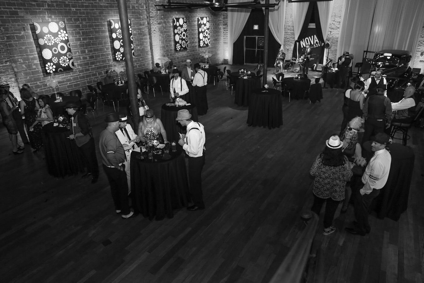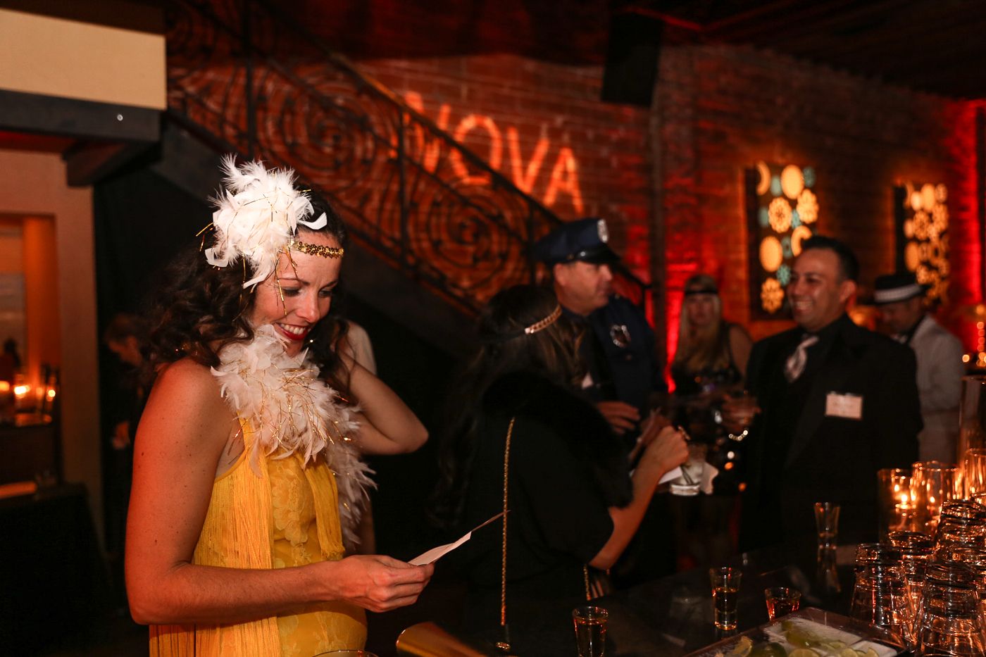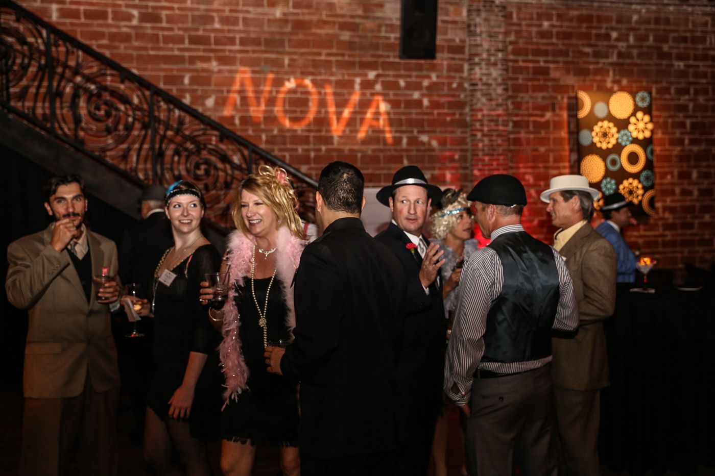 Mark and Shelli’s Get the Picture have been NOVA 535’s go-to photo booth company since the beginning and they ALWAYS bring so much more than just another booth. Their warm, friendly and engaging personalities truly add that extra zing of fun and excitement to each event. They decorate their booths (lots customized options are available for their clients) for each party like our annual NOVAWEEN and NOVA NOEL parties. They recently stepped up their game big time by purchasing a gorgeous vintage Plymouth named “Stella” and added a photobooth to the INSIDE of the car! So when they approached me about their plans for their 20th Wedding Anniversary party, a Roaring 20’s Speak Easy themed affair, plus a murder mystery to boot, of course our 1920 built historic venue was perfect for them.2015 11-28 Olsen-20th-Anniversary-Party-at-venue-NOVA-535-downtown-StPete-DTSP-56