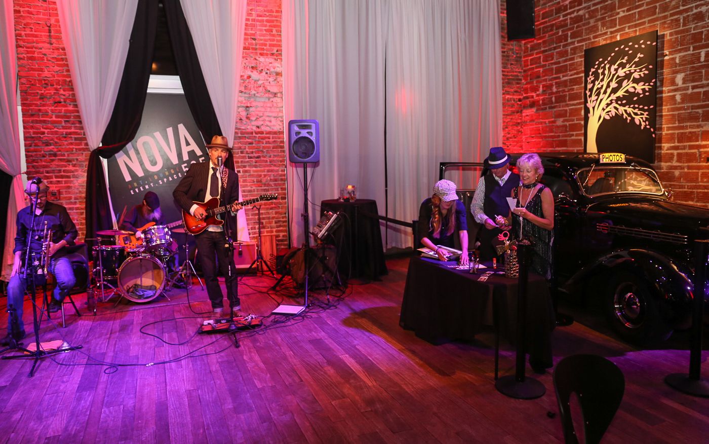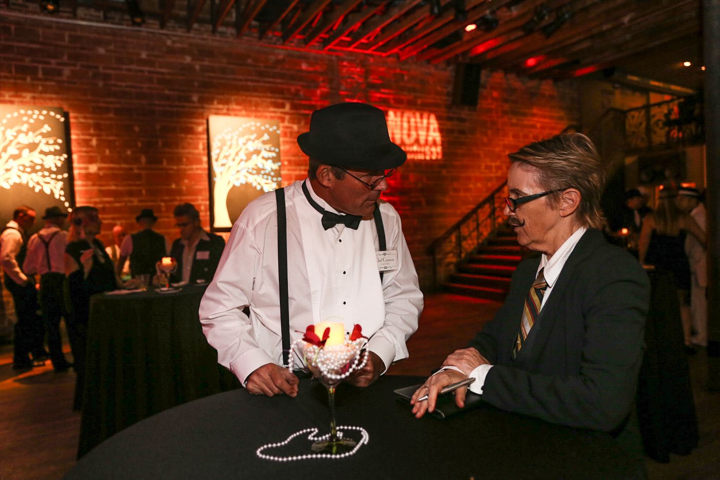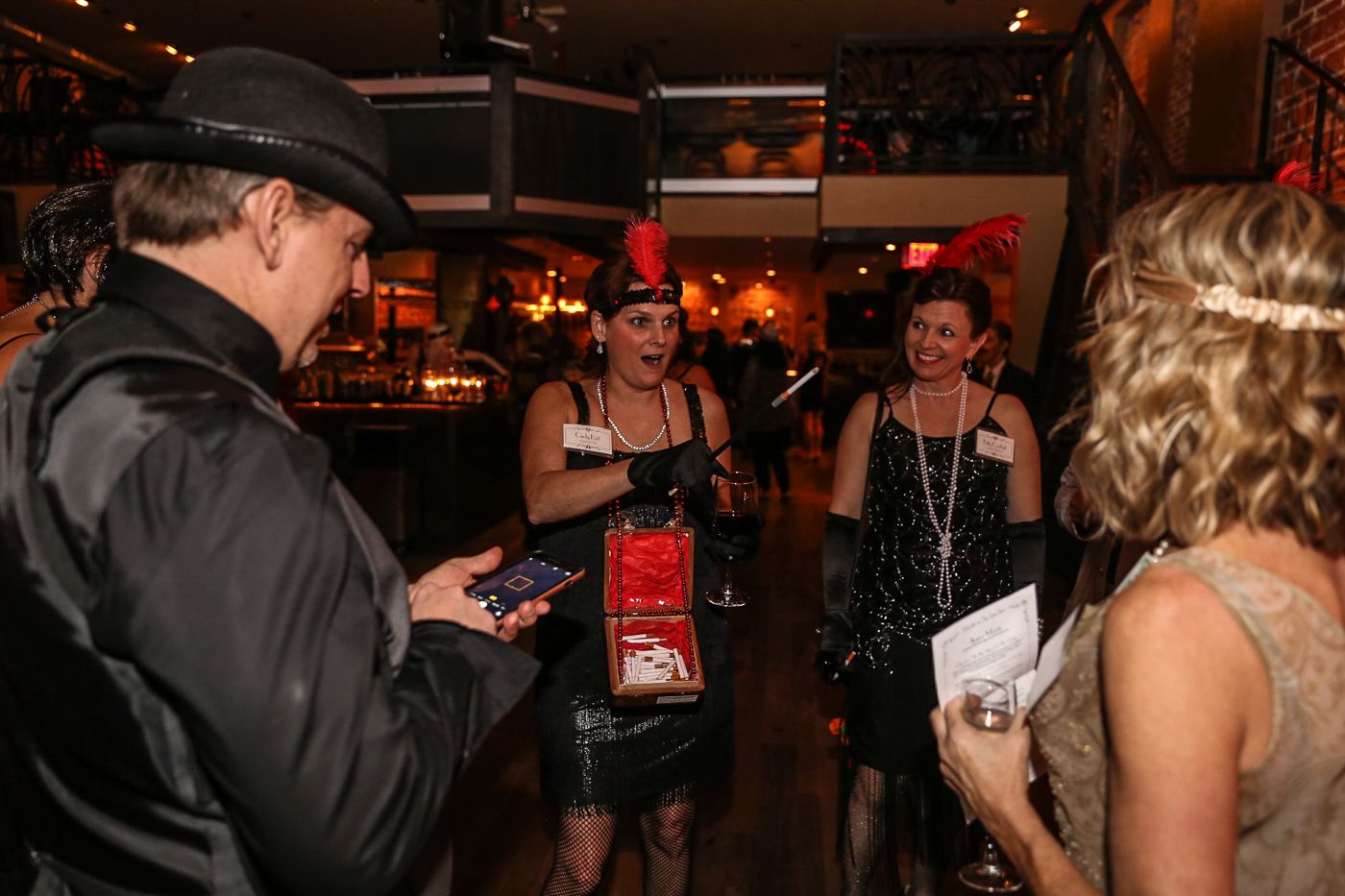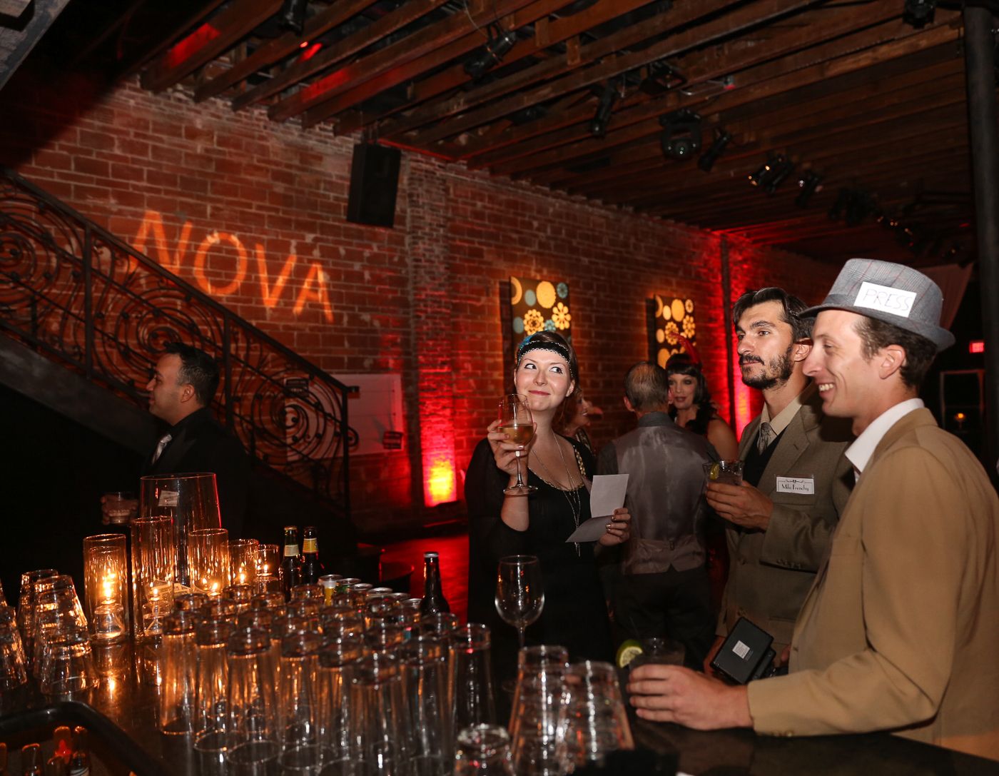 Mark and Shelli’s Get the Picture have been NOVA 535’s go-to photo booth company since the beginning and they ALWAYS bring so much more than just another booth. Their warm, friendly and engaging personalities truly add that extra zing of fun and excitement to each event. They decorate their booths (lots customized options are available for their clients) for each party like our annual NOVAWEEN and NOVA NOEL parties. They recently stepped up their game big time by purchasing a gorgeous vintage Plymouth named “Stella” and added a photobooth to the INSIDE of the car! So when they approached me about their plans for their 20th Wedding Anniversary party, a Roaring 20’s Speak Easy themed affair, plus a murder mystery to boot, of course our 1920 built historic venue was perfect for them.2015 11-28 Olsen-20th-Anniversary-Party-at-venue-NOVA-535-downtown-StPete-DTSP-56