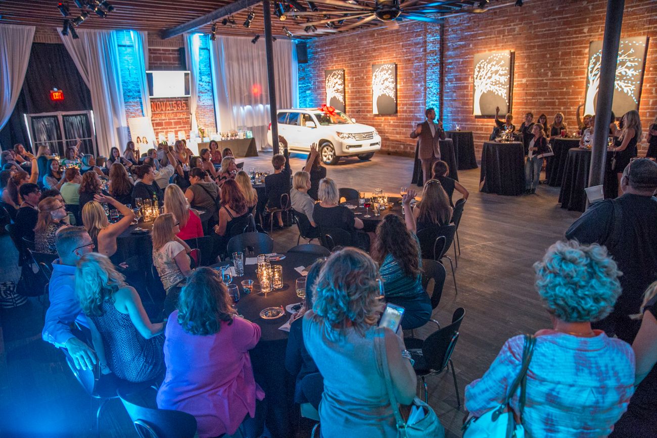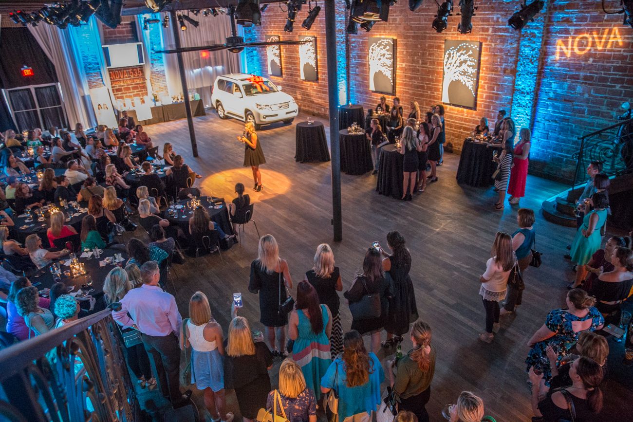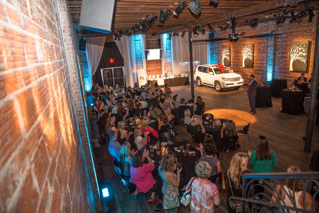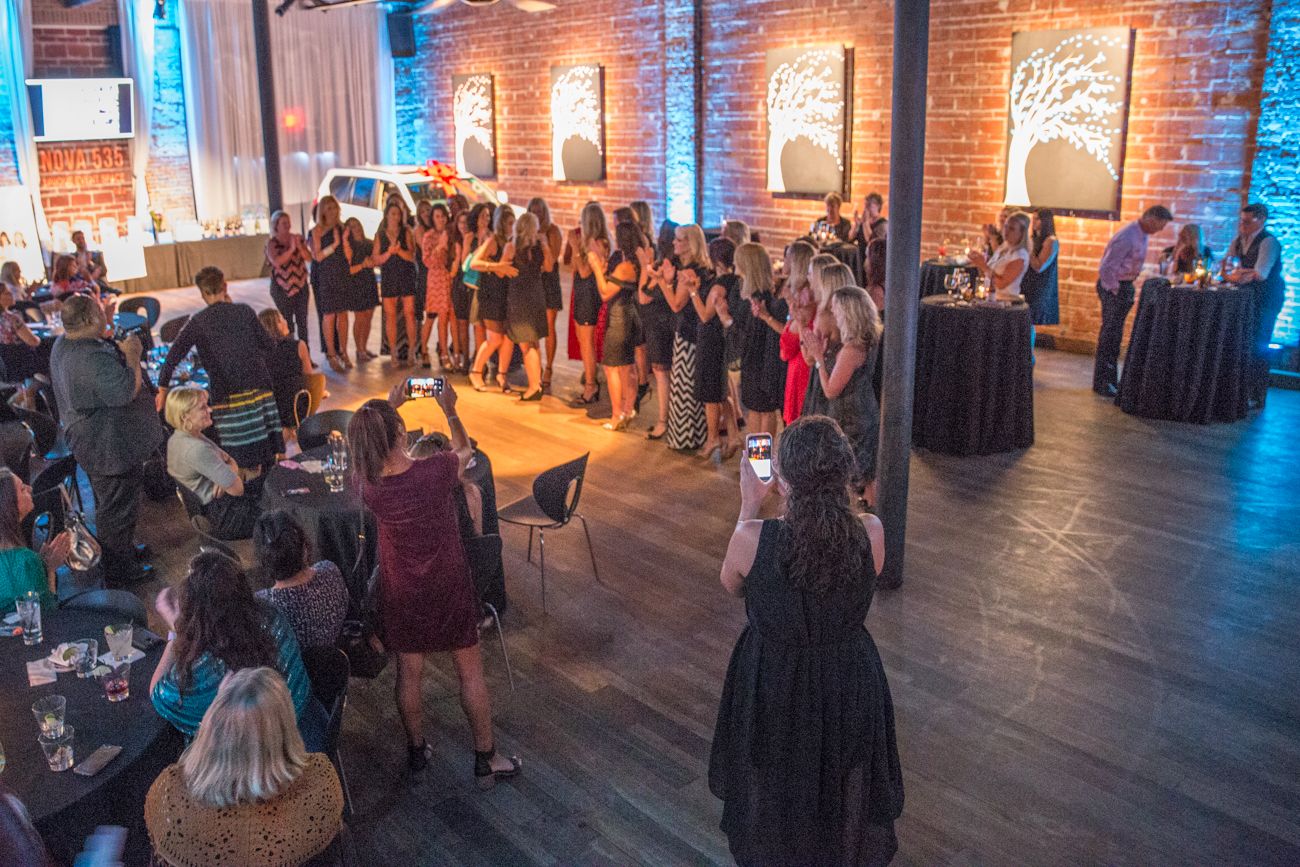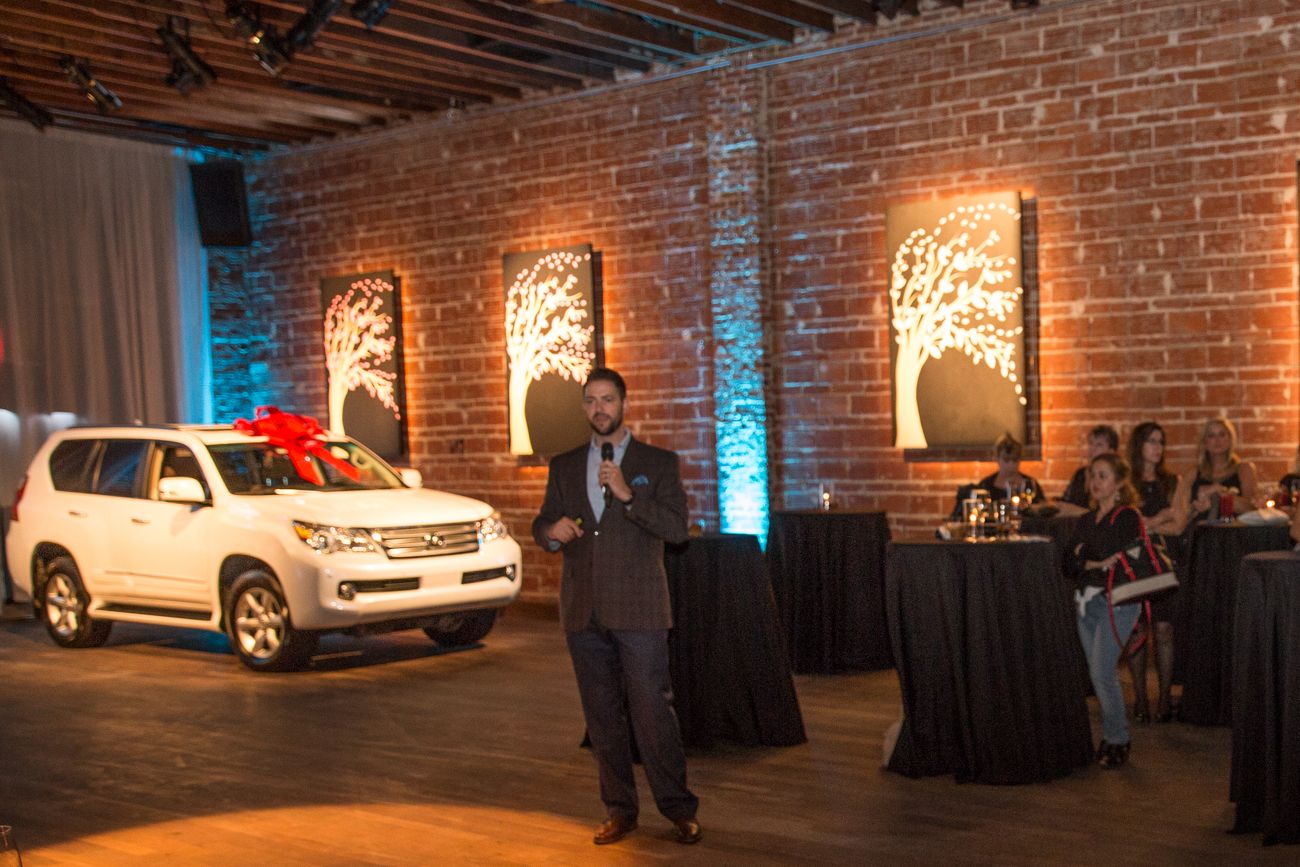When we booked Rodan + Fields for an awards celebration party a few months ago, I didn’t immediately recognize the brand name. My skin care regimen is eating well, lots of clean water and plenty of organic coconut oil, so I’m a bit in the dark as to which brands are what. Along the planning path I learned who Rodan + Fields was and that they take good care of their people. One of those lovely people is Erin King, who I got to know a bit as we discussed details, timelines, and floorplans. We also had to decide where we should park the Lexus 460 here inside of our historic venue (built 1920) NOVA 535. Her associate Heather Tuck (congrats Heather!!) was receiving the gorgeous new Lexus as part of her compensation and bonus package! WOW! So I suggested setting it along our gorgeous, red clay block walls. Makes for such fabulous photo opportunities which you’ll certainly enjoy….read on!