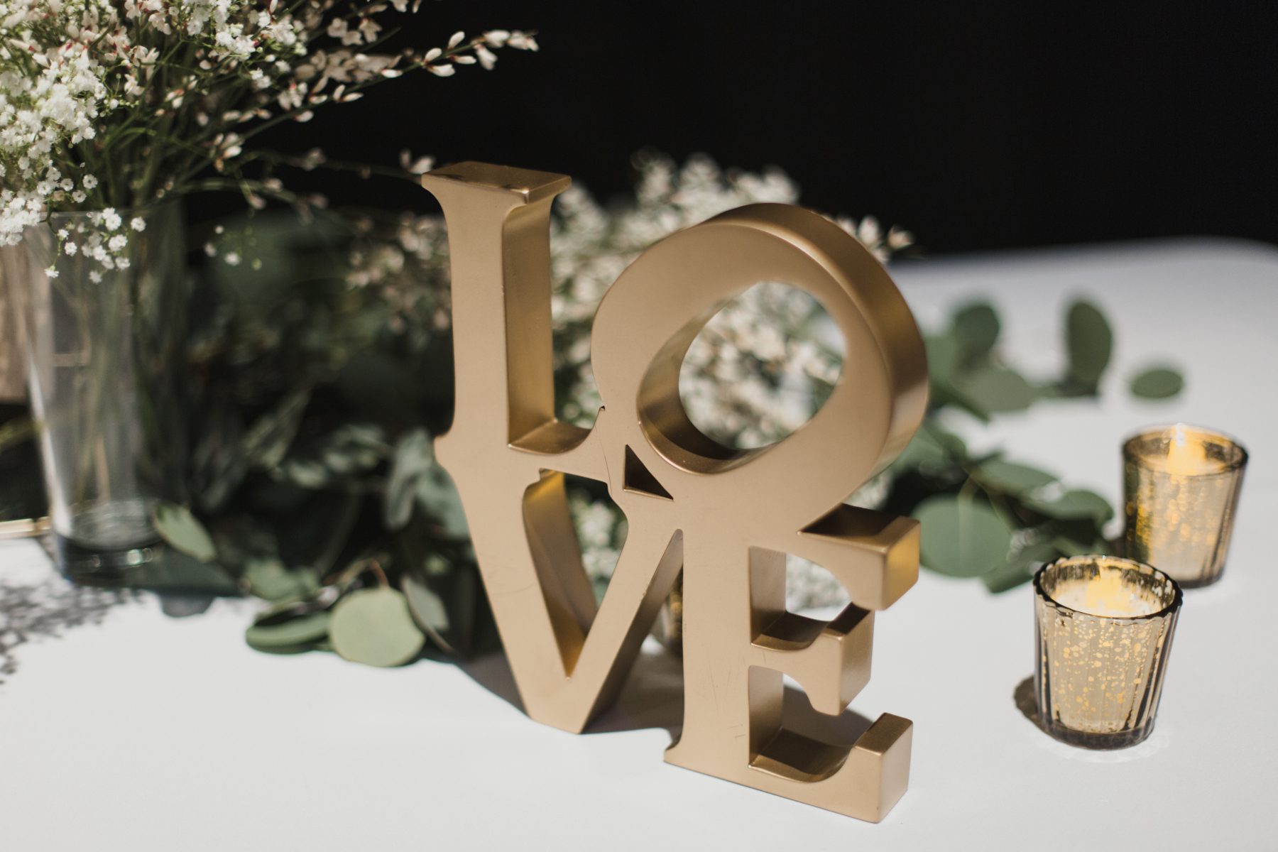 Since they were having a winter wedding, the pair kept the color palette rich with burgundy, navy, and gold. “I wanted to keep the colors warm and inviting. I also wanted to play off the brick walls and warm feeling of the venue,” the bride explained.