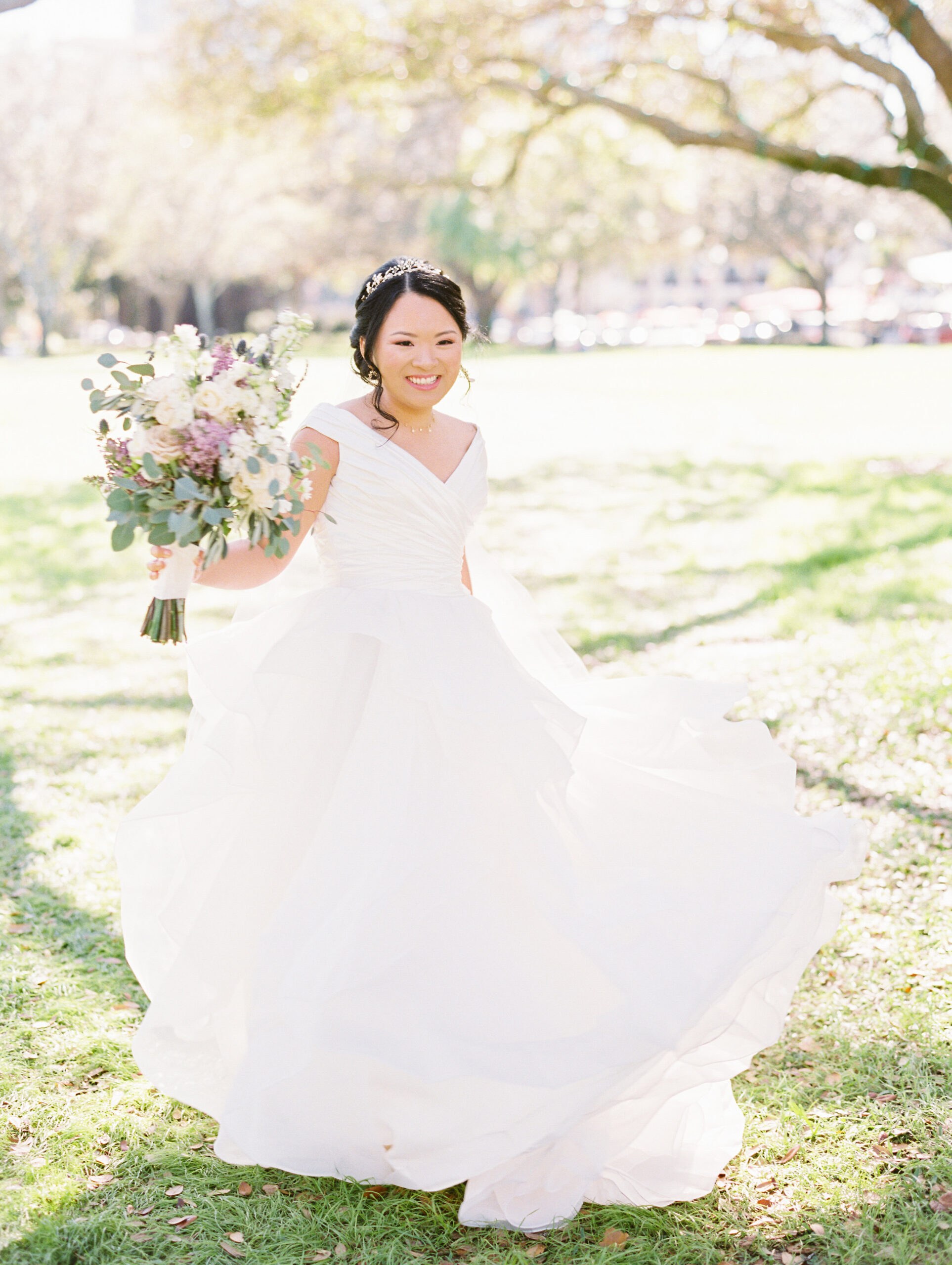 Bride in off the shoulder gown and tiara with white and purple bouquet Bridesmaids in mismatched purple dresses Organic blue wedding invitations Chalkboard ceremony welcome sign Ceremony in bamboo garden at NOVA 535 in St. Petersburg Florida Vietnamese wedding ceremony with colorful streamer backdrop | Multi-Cultural St Pete Wedding Bamboo garden ceremony at NOVA 535 in St. Pete Vietnamese wedding ceremony with colorful streamer backdrop | Multi-Cultural St Pete Wedding Mother and father walking bride down the aisle at NOVA 535 Vietnamese wedding ceremony with colorful streamer backdrop | Multi-Cultural St Pete Wedding Bride in veil with groom in bamboo gardens at NOVA 535 Bride with white and purple bouquet with groom under tree Bride with tiara with groom in floral print tie Reception at NOVA 535 with hanging Chinese lanterns and draping | Multi-Cultural St Pete Wedding White floral centerpiece in chinoiserie vase Framed escort display with hanging clothespins Sweetheart table with white florals at NOVA 535 Reception at NOVA 535 with hanging Chinese lanterns Buttercream wedding cake with fresh fruit Bride and groom in traditional Vietnamese wedding outfits cutting cake | Multi-Cultural St Pete Wedding