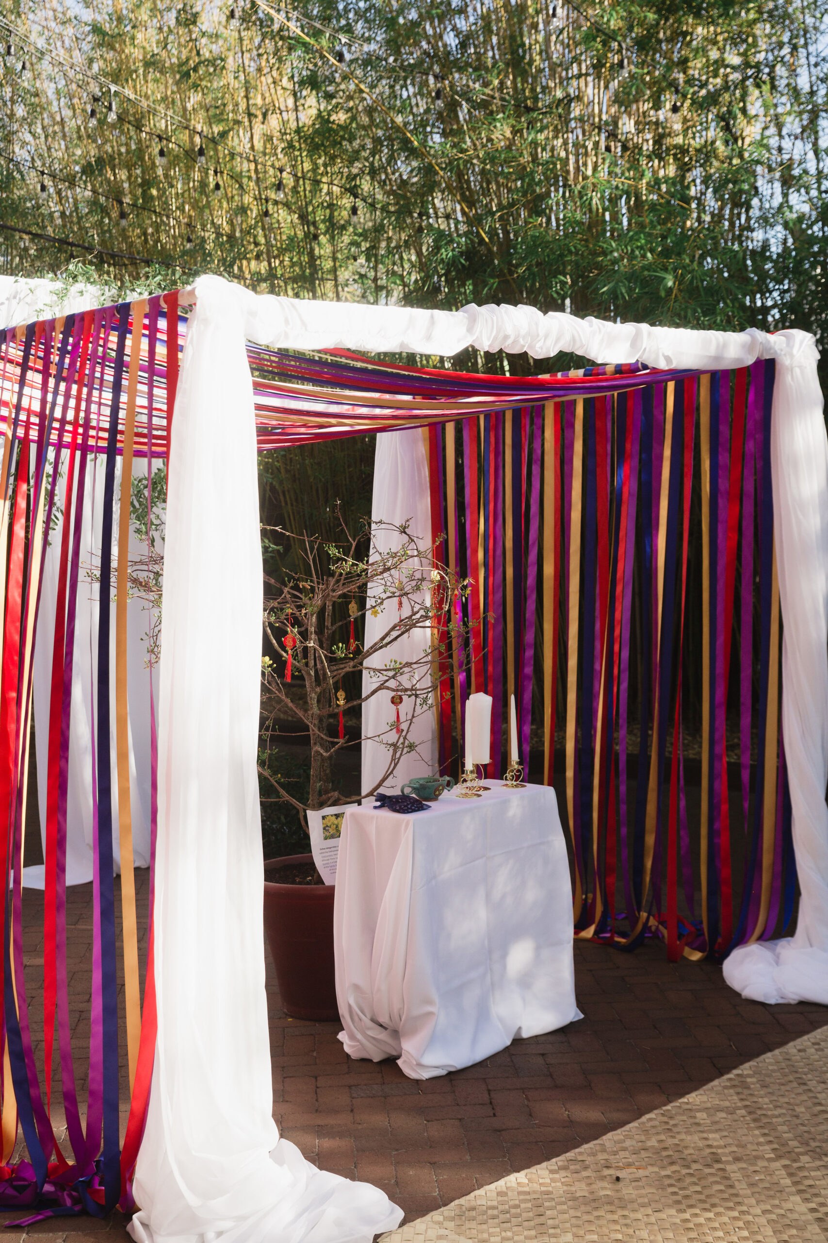 I enjoyed meeting and working with Judy and Casey on their multi-cultural St Pete wedding, a sweet, smart, fun couple from Gainesville; their families originating in Vietnam and Ireland. Two lovely countries, with long, complex histories, full of unique customs, delicious foods, and proud cultures. I’ve been lucky enough to visit both, most recently spending 90 days in Vietnam, and find their romantic match-up, perfectly delightful! Bamboo garden wedding ceremony with draped arbor at NOVA 535 | Multi-Cultural St Pete WeddingThey added their own flavor and personalities into NOVA 535, creating a warm, welcoming, fabulous multi-cultural St. Pete wedding ceremony and reception! I’m honored for their trust in Team NOVA 535! So let’s raise our glasses and toast to their health and happiness, with a hearty Cheers, Sláinte and Một hai ba dzô!!