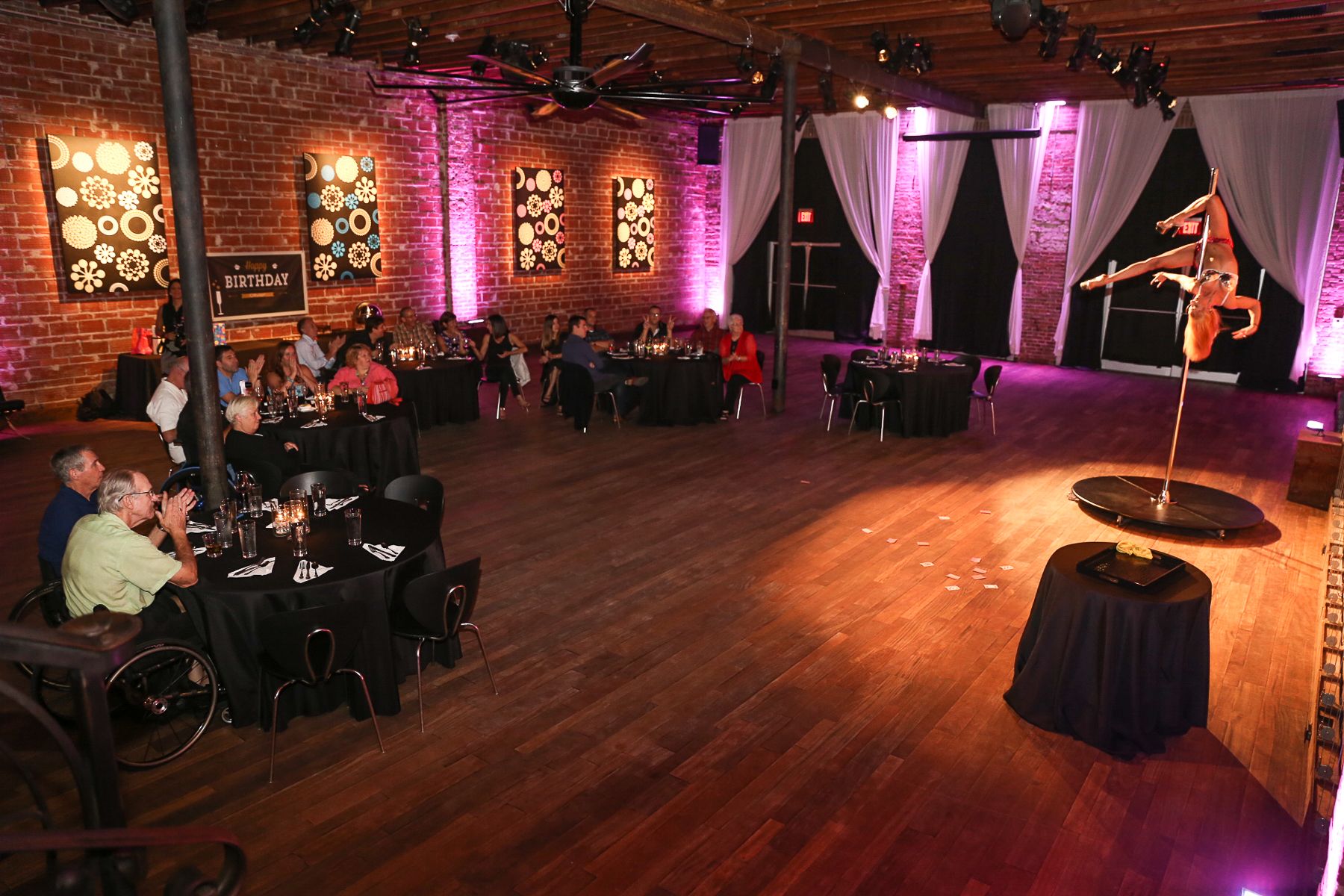 Entertainment. What’s a 50th birthday for a good looking, unmarried, globe trotting a guy without a gorgeous, exotically talented (1/2, err 3/4 naked) lady dancing around his birthday cake? That’d be not delighted. Here at NOVA we focus on wowing and delighting our clients’ and their guests. So we called local dancer, and burlesque star Katie James, once again, to bedazzle our birthday boy! Katie too has performed here many times, always leaving our guests wanting more!