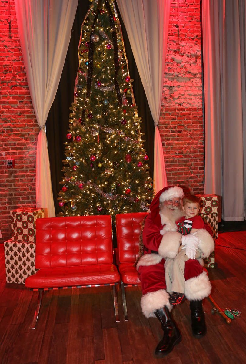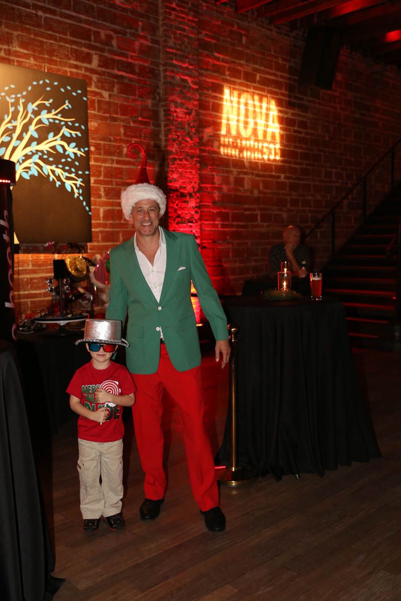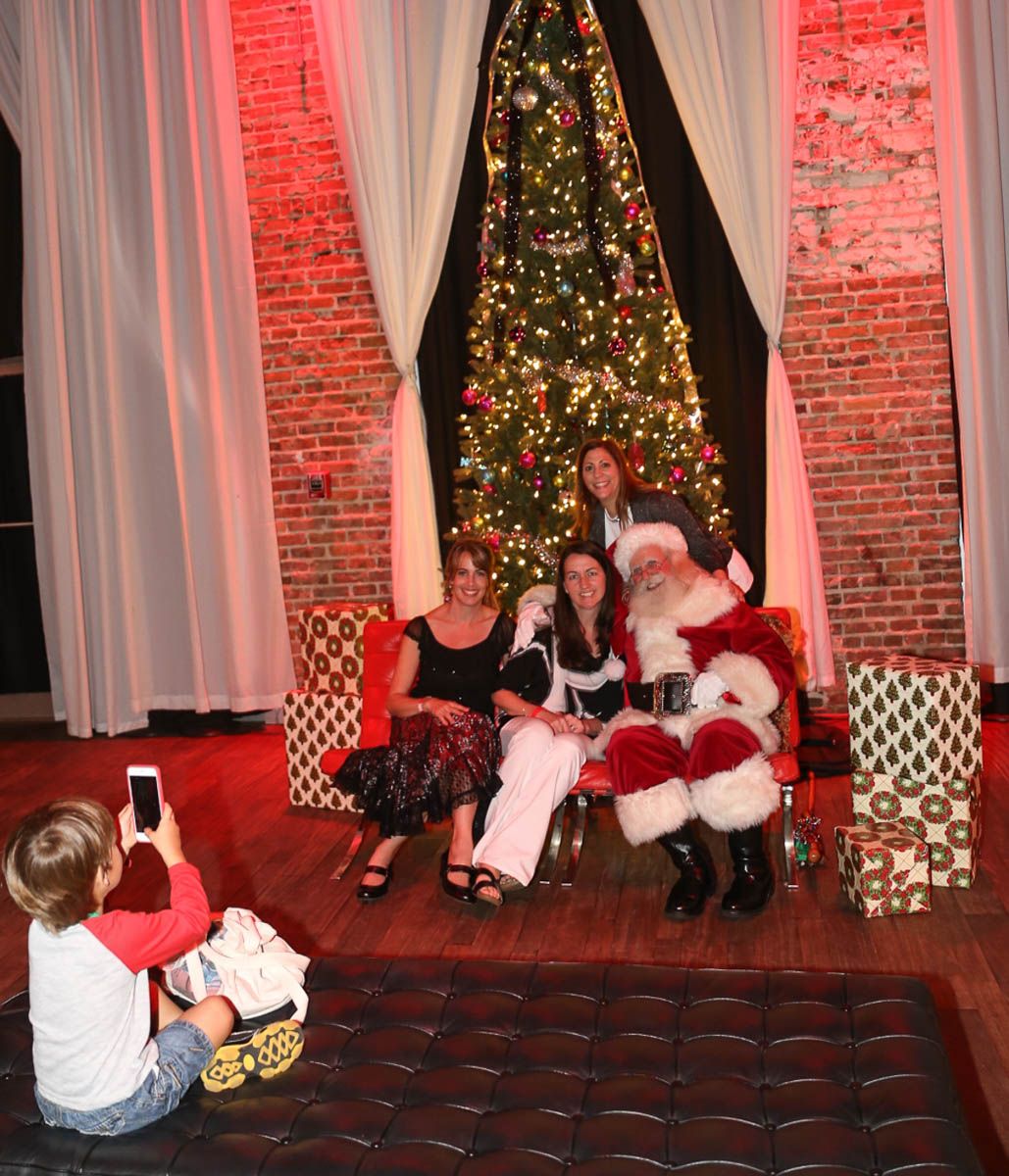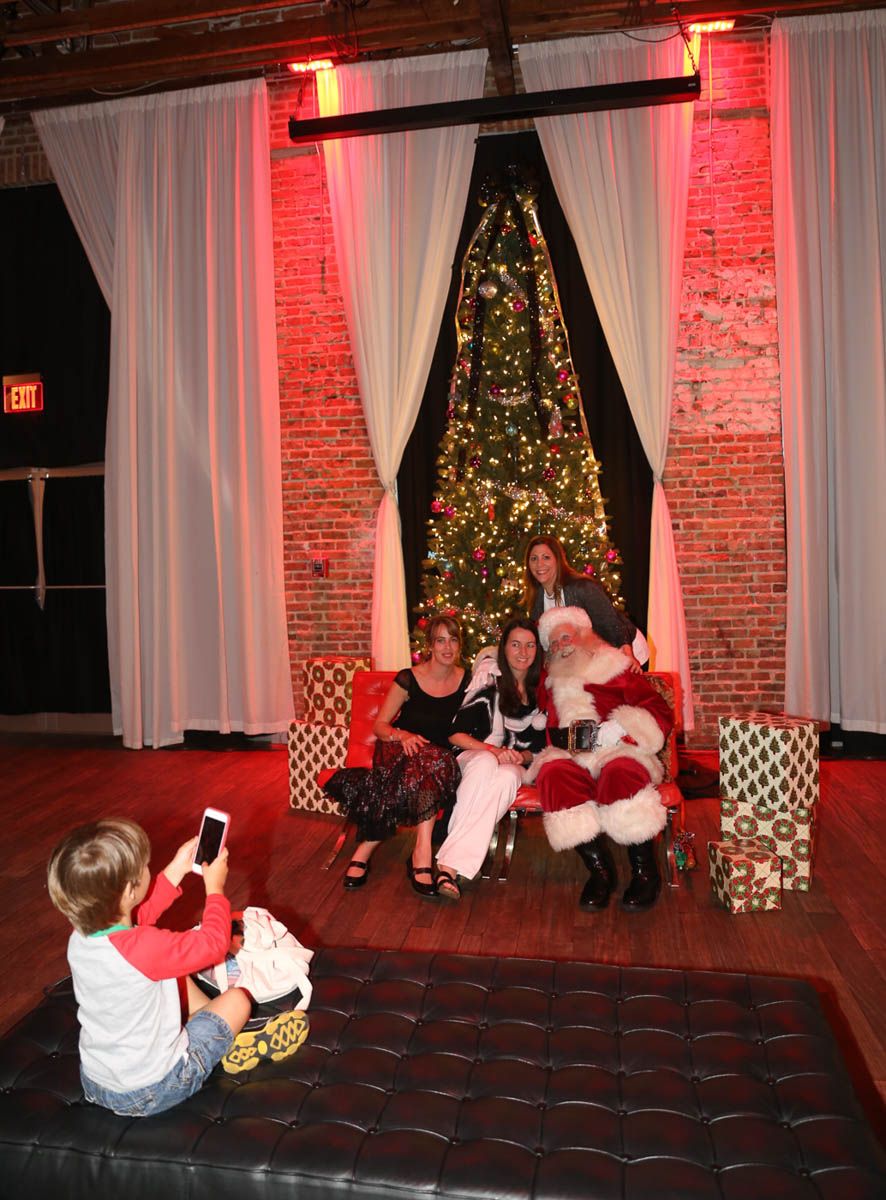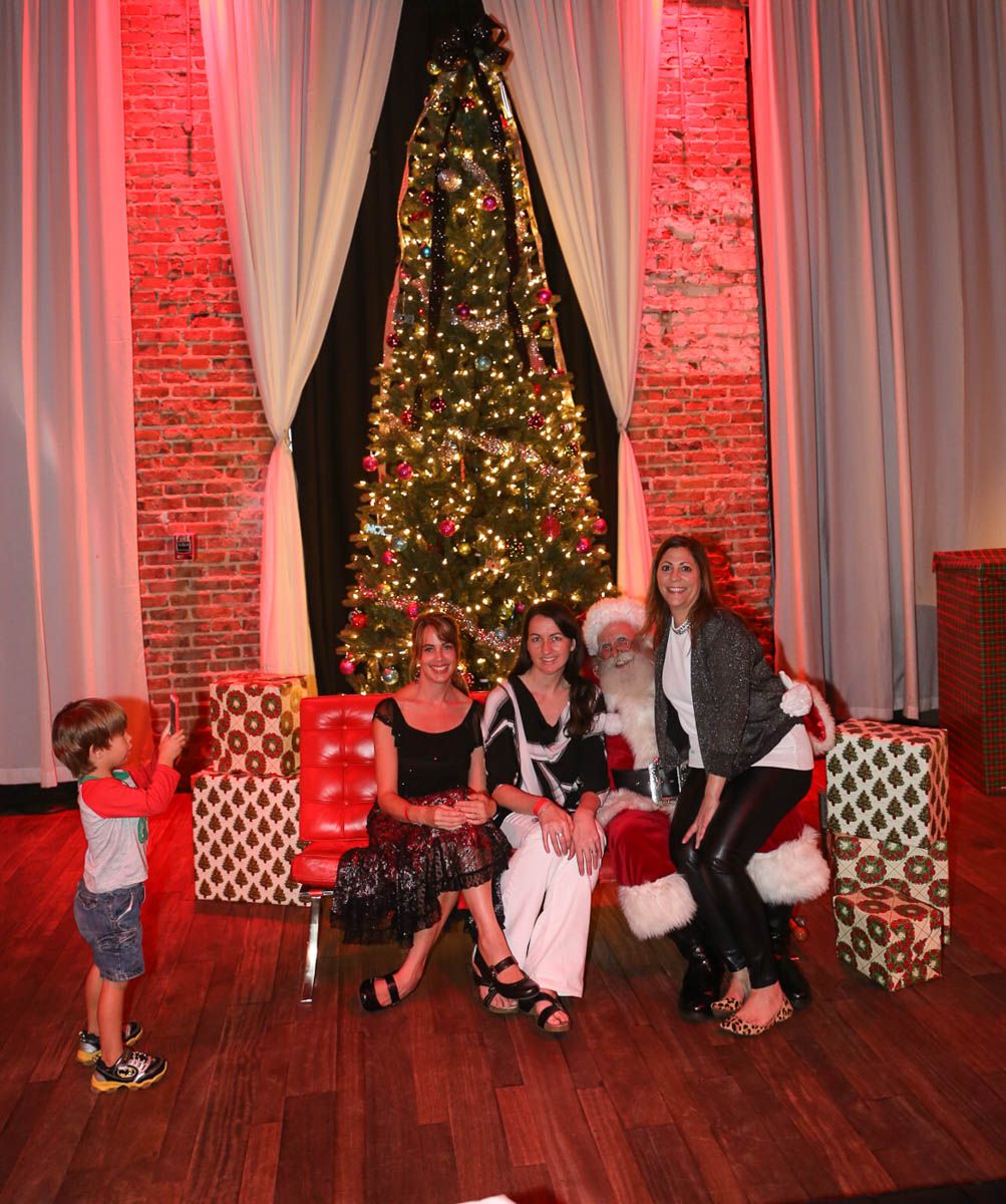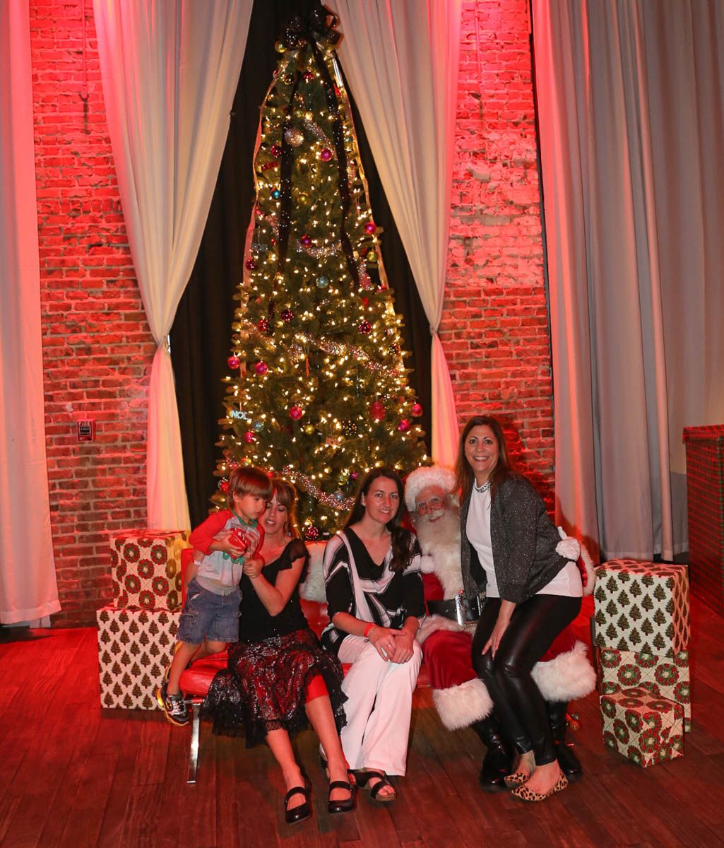 As families walked through the entrance of the historic building, the beautiful mood lighting and enormous Christmas tree made it feel as though they stepped into a winter wonderland. Guests enjoyed a scrumptious meal prepared by Murray’s Chicago Deli and the spread included fire-grilled salmon that melted in your mouth (Bravo Murray, we love having you at NOVA 535!). The kids were having innocent fun and the adults were schmoozing and boozing, then the man of the hour arrived – Santa Claus (played by the incredible Ross Tarr). With countless opportunities for photos, he truly was a magical presence. Not only did Mister Red Suit provide fun for the families, Get The Picture was also in the house with plenty of holiday props to play with in the photo booth (Thanks Mark and Shelli for always creating fun for the guests! Did you know that they just celebrated their 20 year wedding anniversary at NOVA 535?).