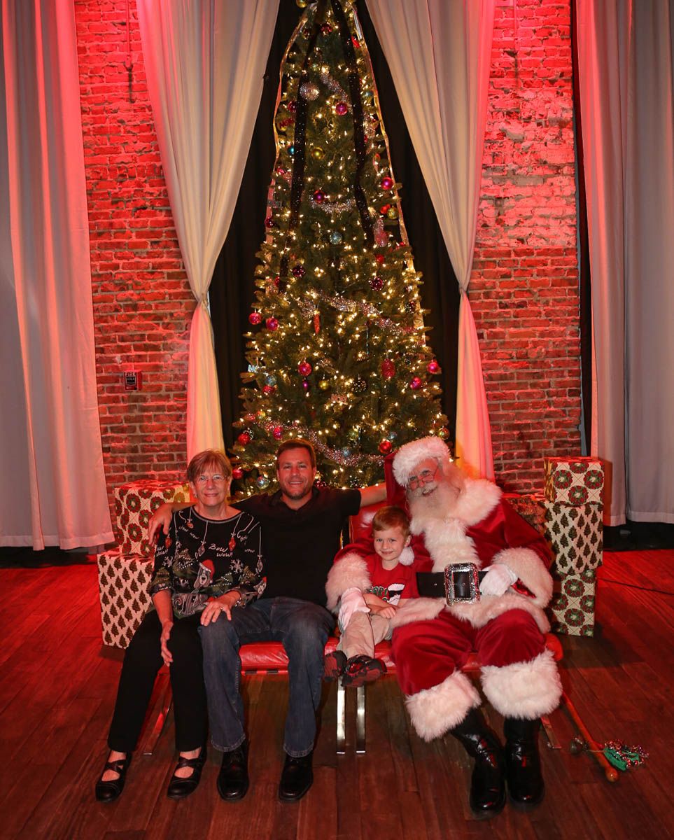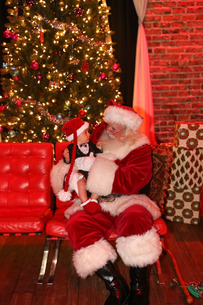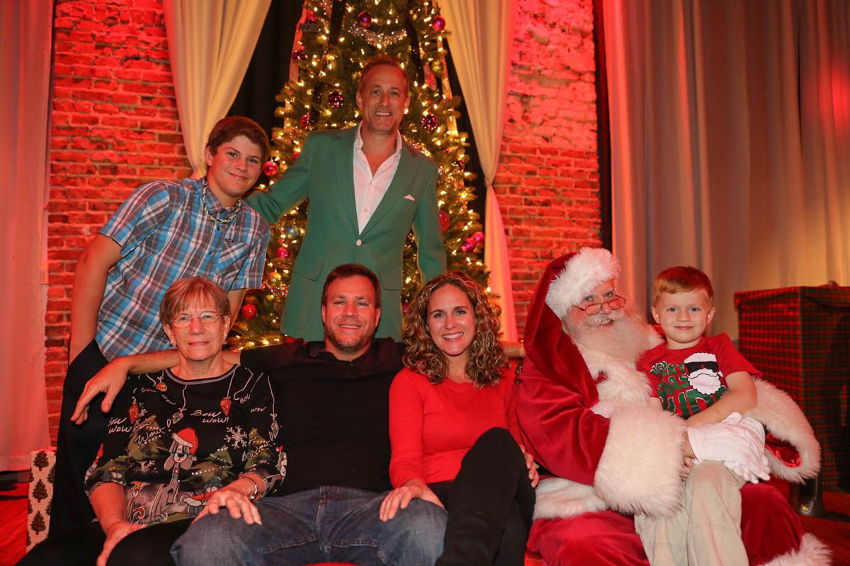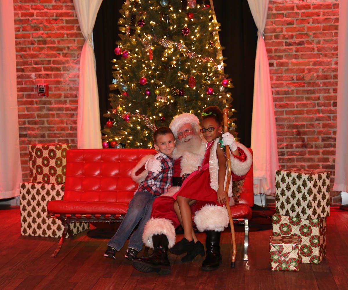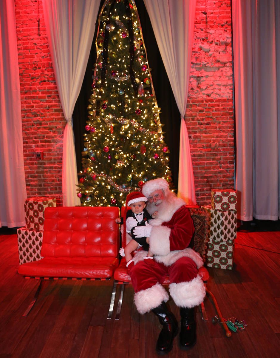 As families walked through the entrance of the historic building, the beautiful mood lighting and enormous Christmas tree made it feel as though they stepped into a winter wonderland. Guests enjoyed a scrumptious meal prepared by Murray’s Chicago Deli and the spread included fire-grilled salmon that melted in your mouth (Bravo Murray, we love having you at NOVA 535!). The kids were having innocent fun and the adults were schmoozing and boozing, then the man of the hour arrived – Santa Claus (played by the incredible Ross Tarr). With countless opportunities for photos, he truly was a magical presence. Not only did Mister Red Suit provide fun for the families, Get The Picture was also in the house with plenty of holiday props to play with in the photo booth (Thanks Mark and Shelli for always creating fun for the guests! Did you know that they just celebrated their 20 year wedding anniversary at NOVA 535?).