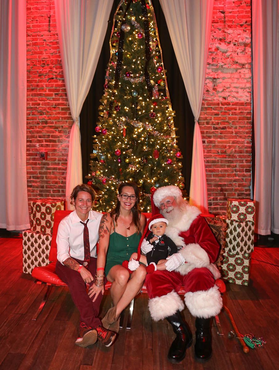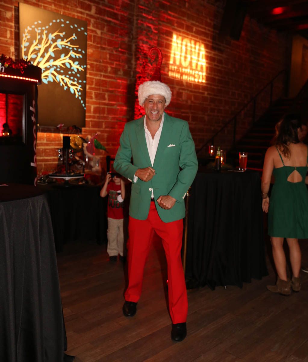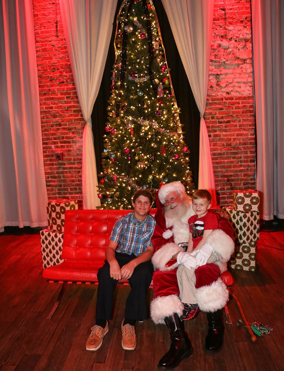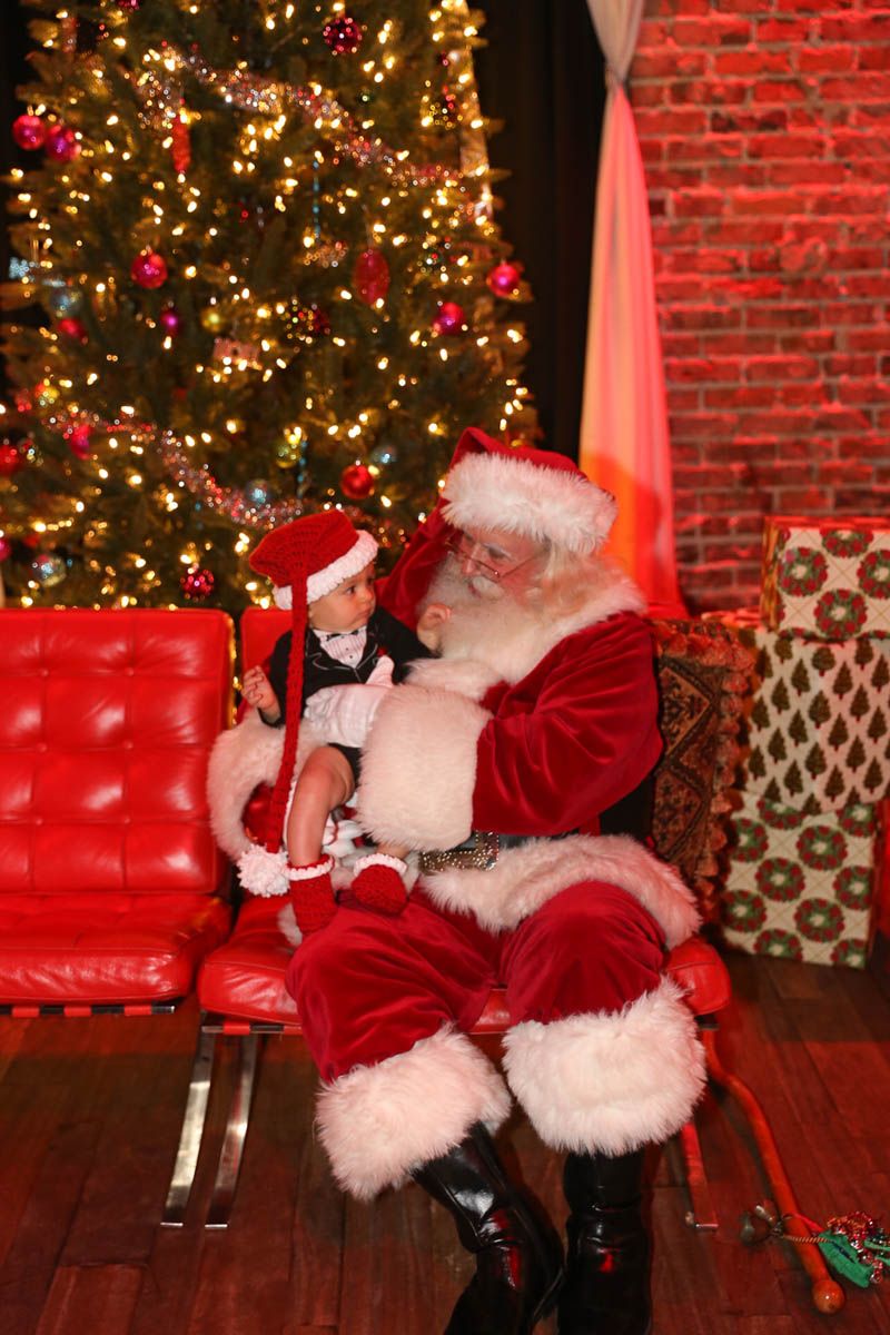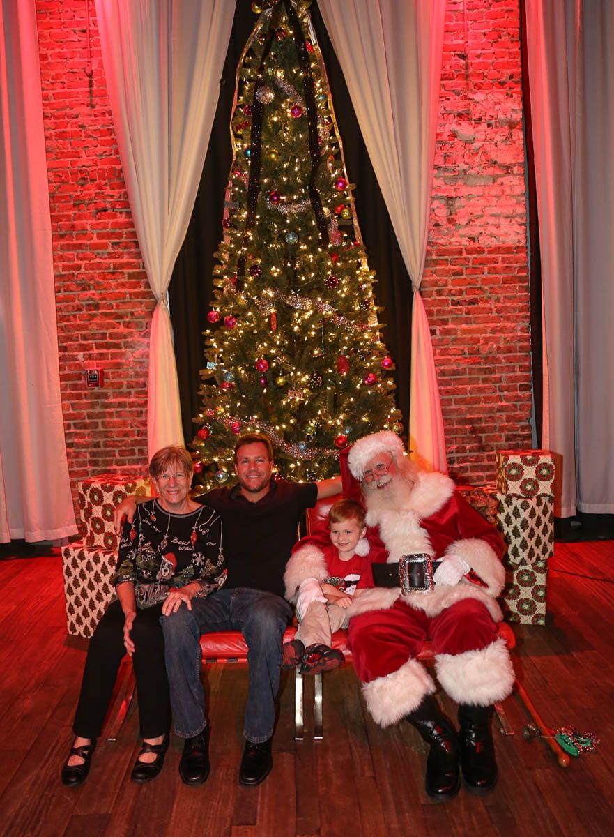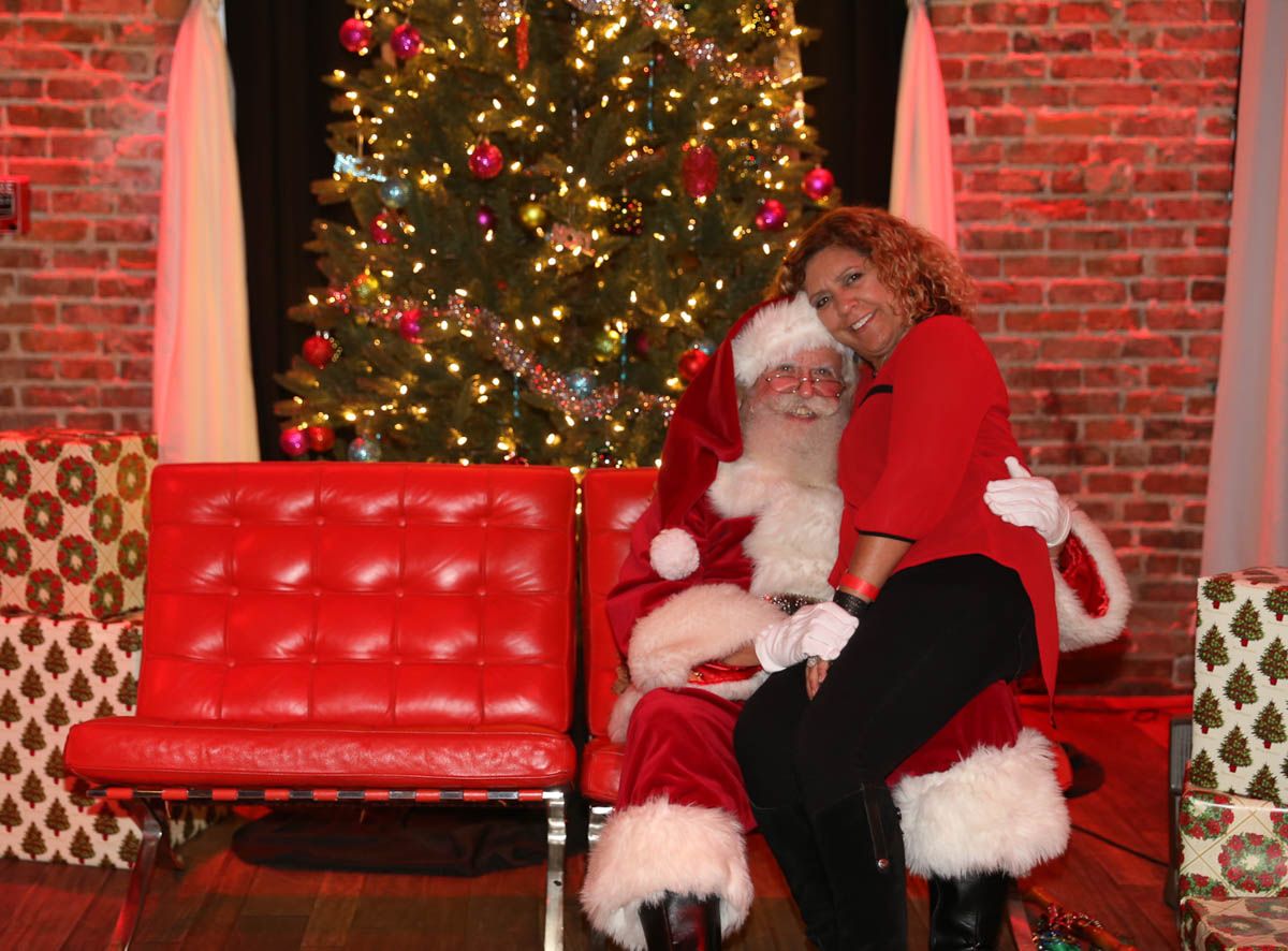 As families walked through the entrance of the historic building, the beautiful mood lighting and enormous Christmas tree made it feel as though they stepped into a winter wonderland. Guests enjoyed a scrumptious meal prepared by Murray’s Chicago Deli and the spread included fire-grilled salmon that melted in your mouth (Bravo Murray, we love having you at NOVA 535!). The kids were having innocent fun and the adults were schmoozing and boozing, then the man of the hour arrived – Santa Claus (played by the incredible Ross Tarr). With countless opportunities for photos, he truly was a magical presence. Not only did Mister Red Suit provide fun for the families, Get The Picture was also in the house with plenty of holiday props to play with in the photo booth (Thanks Mark and Shelli for always creating fun for the guests! Did you know that they just celebrated their 20 year wedding anniversary at NOVA 535?).