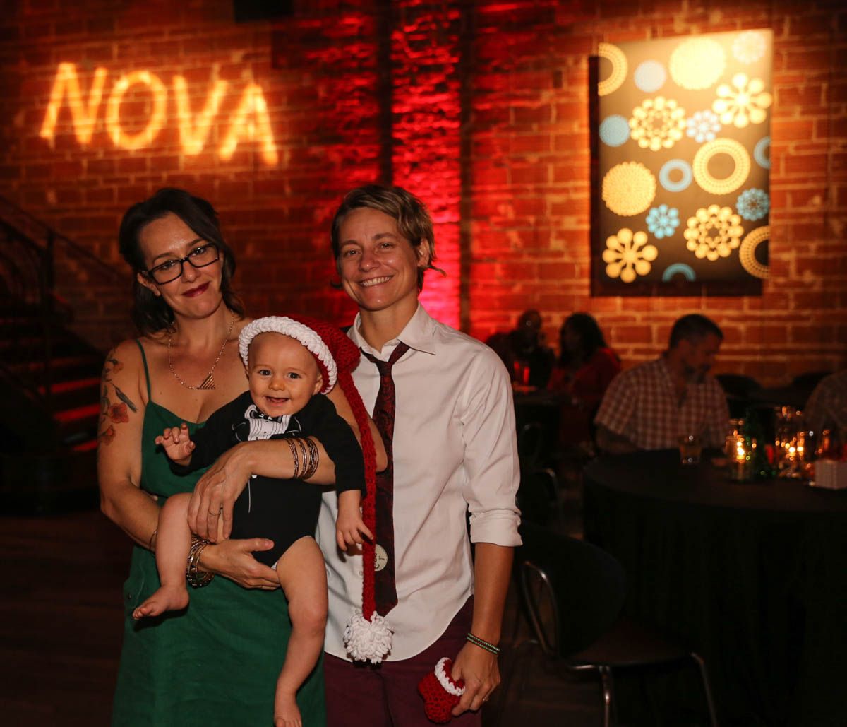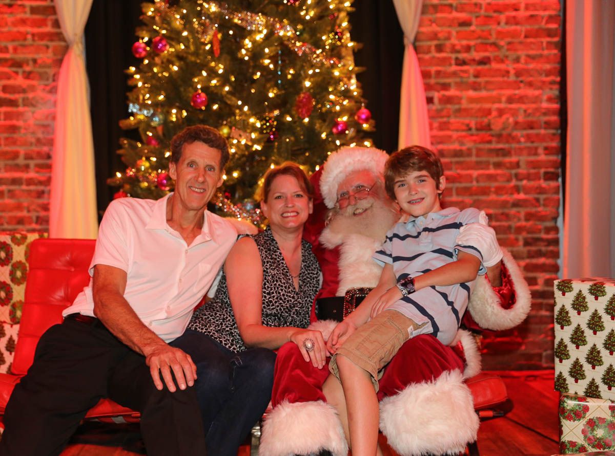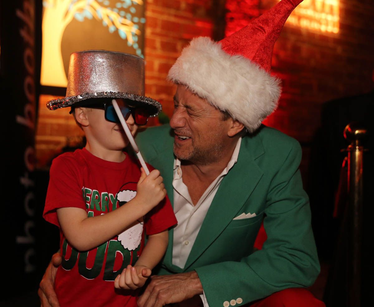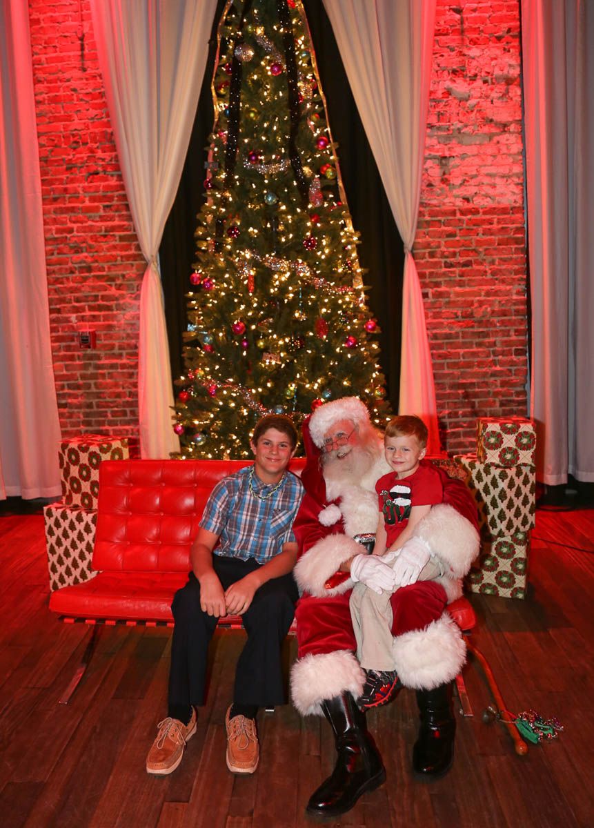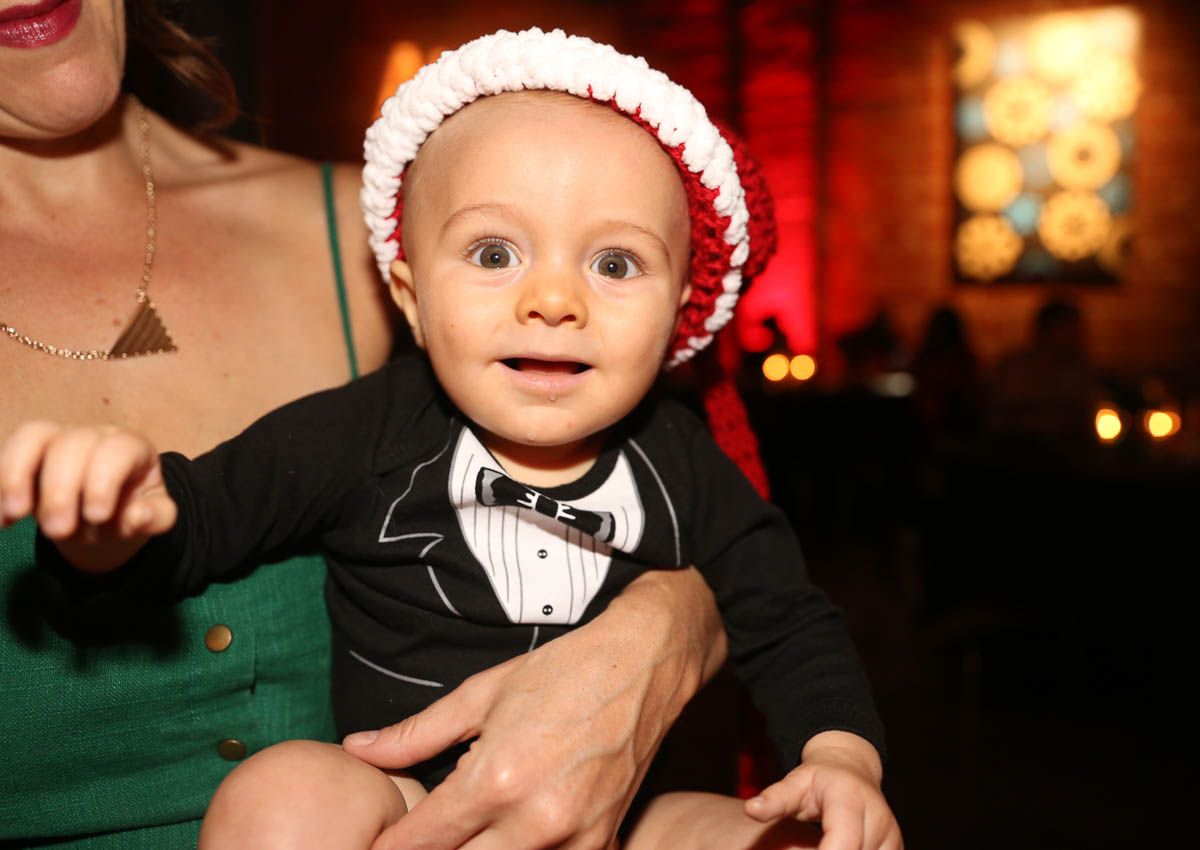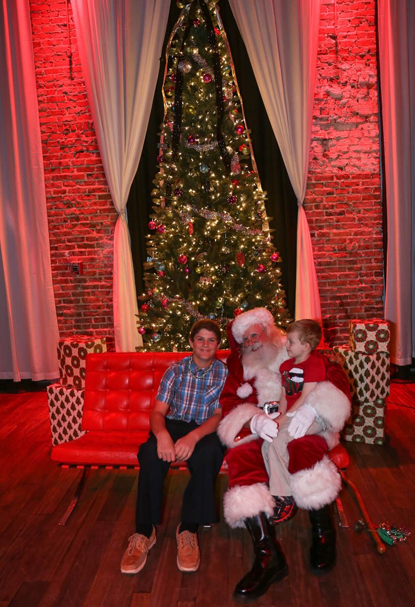 As families walked through the entrance of the historic building, the beautiful mood lighting and enormous Christmas tree made it feel as though they stepped into a winter wonderland. Guests enjoyed a scrumptious meal prepared by Murray’s Chicago Deli and the spread included fire-grilled salmon that melted in your mouth (Bravo Murray, we love having you at NOVA 535!). The kids were having innocent fun and the adults were schmoozing and boozing, then the man of the hour arrived – Santa Claus (played by the incredible Ross Tarr). With countless opportunities for photos, he truly was a magical presence. Not only did Mister Red Suit provide fun for the families, Get The Picture was also in the house with plenty of holiday props to play with in the photo booth (Thanks Mark and Shelli for always creating fun for the guests! Did you know that they just celebrated their 20 year wedding anniversary at NOVA 535?).