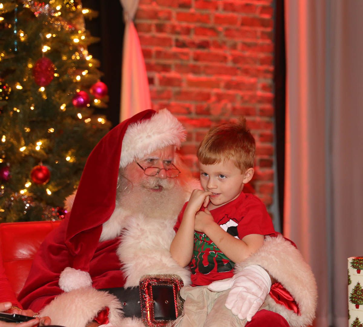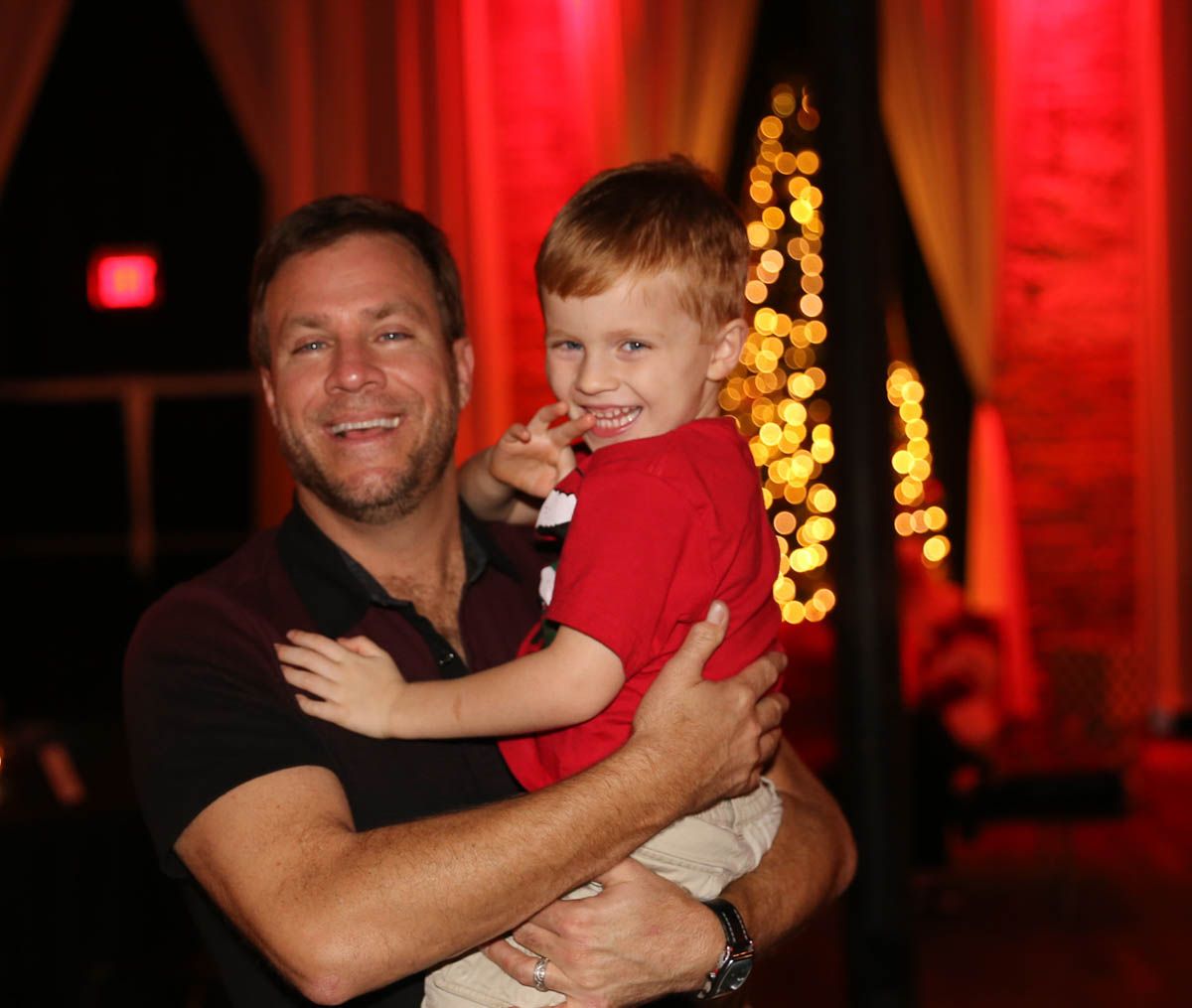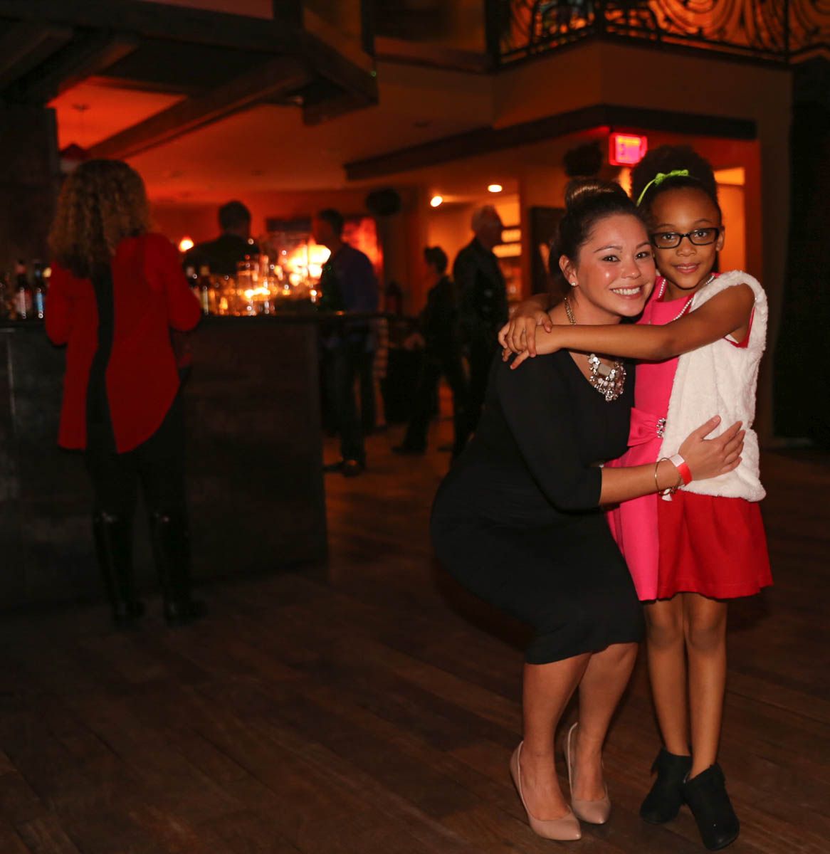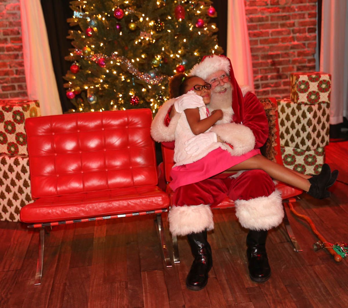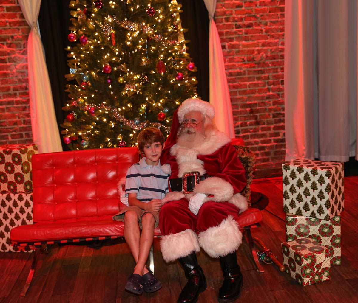As families walked through the entrance of the historic building, the beautiful mood lighting and enormous Christmas tree made it feel as though they stepped into a winter wonderland. Guests enjoyed a scrumptious meal prepared by Murray’s Chicago Deli and the spread included fire-grilled salmon that melted in your mouth (Bravo Murray, we love having you at NOVA 535!). The kids were having innocent fun and the adults were schmoozing and boozing, then the man of the hour arrived – Santa Claus (played by the incredible Ross Tarr). With countless opportunities for photos, he truly was a magical presence. Not only did Mister Red Suit provide fun for the families, Get The Picture was also in the house with plenty of holiday props to play with in the photo booth (Thanks Mark and Shelli for always creating fun for the guests! Did you know that they just celebrated their 20 year wedding anniversary at NOVA 535?).