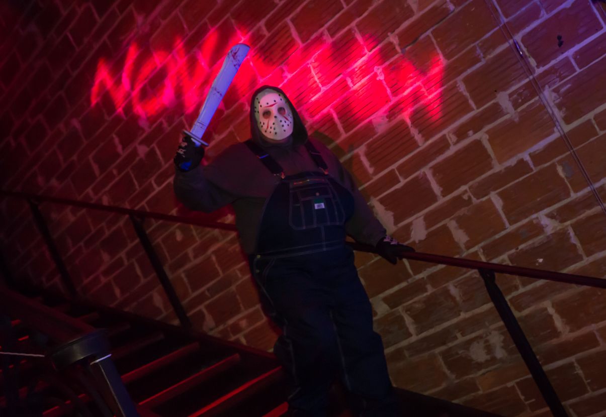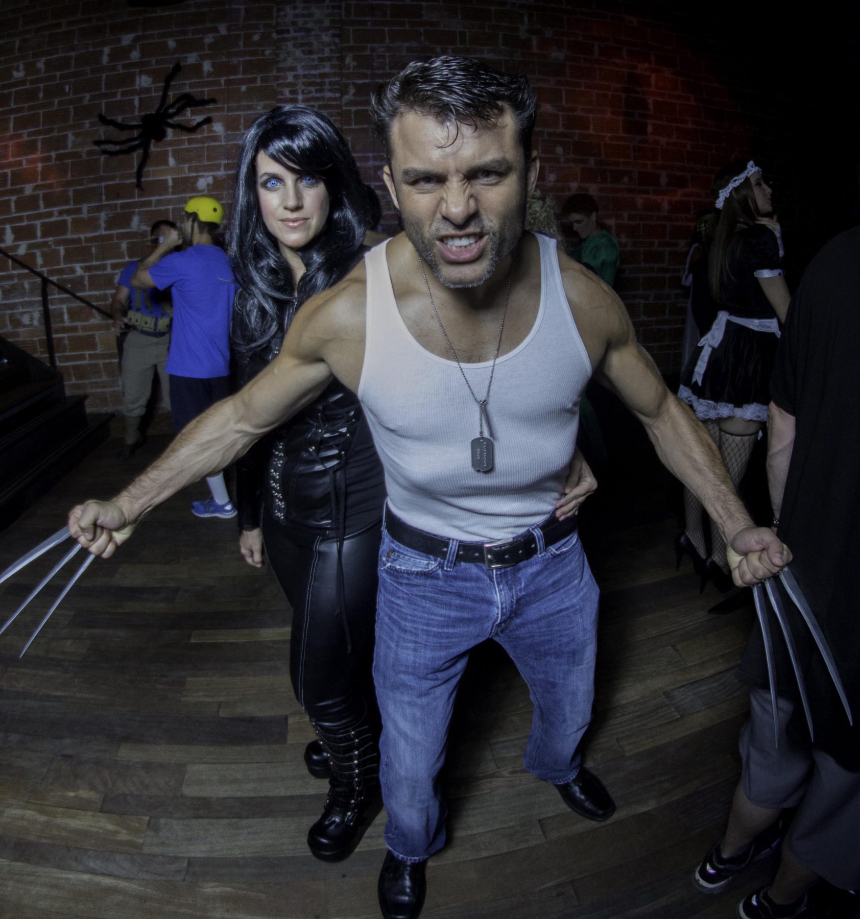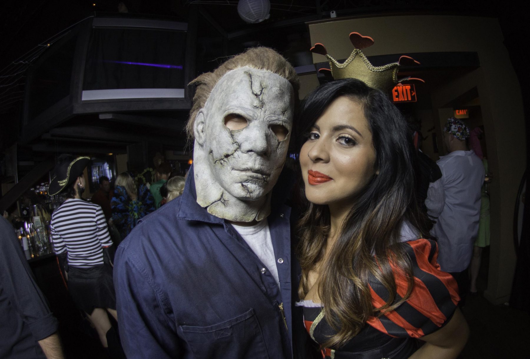 Brother Chris and wife Lindsey, Cousin Bert, Steve “Quackler”, Kelly and Skeie, me and beautiful, devilish Jenna, Helene and Drew T$ Edwards, part of the special core of family and friends that make up the spirit of NOVAWEEN.2014-10-31-NOVAWEEN-8-novaween-gobo-stairs-masked-killer