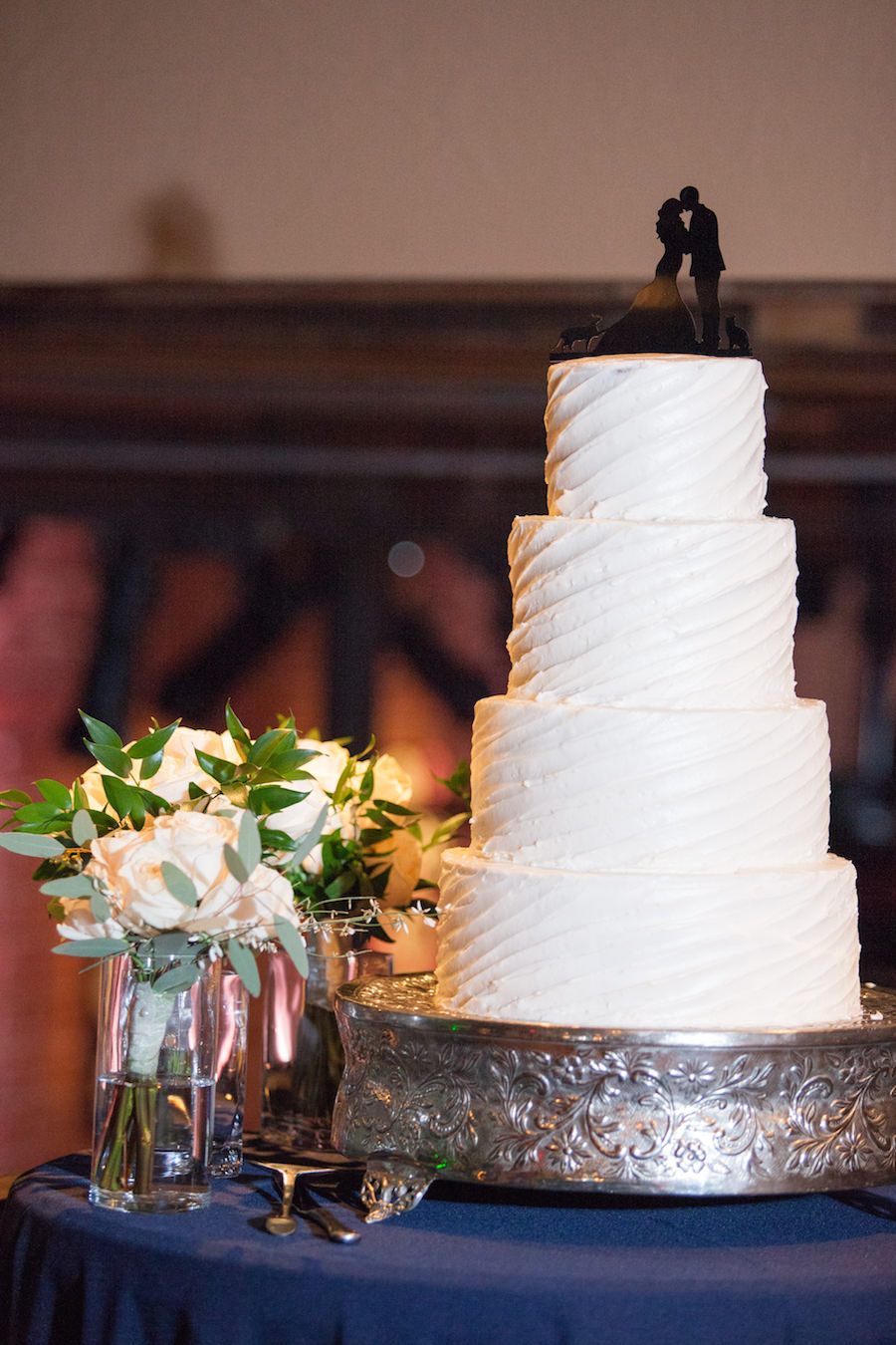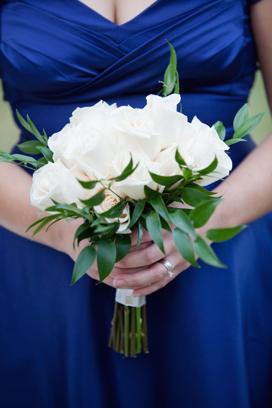 Navy blue, silver, and ivory. We chose the blue because it reminds me of my birthstone, sapphire, and it went well with silver and ivory. They seemed like nice colors for the holidays, as we got married a couple weeks before Christmas.